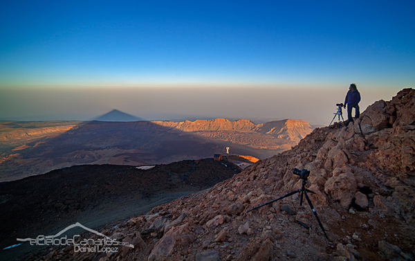 На восходе и закате вулкан Тейде отбрасывает тень далеко за горизонт. Треугольную, что характерно ))