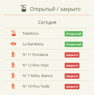 Там в правом нижнем углу есть информеры состояния фуникулера и пеших маршрутов. На данный момент открыты только фуникулер и верхняя смотровая площадка (La Rambleta). Все тропы закрыты.