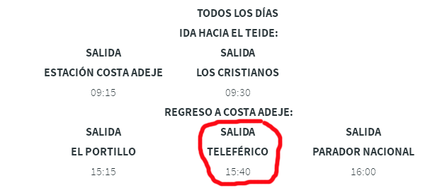 Автобус 342 на Тейде стартует в 9:15 от автостанции Коста Адехе. От отеля до автостанции вам надо подъехать на автобусе 467. Ехать 15 минут. Билеты можно купить у водителя непосредственно при посадке в автобус. Но если хотите гарантированно уехать, а не остаться без места, то лучше заранее здесь. |